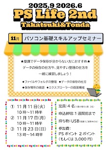 大好評の、毎月実施している PS Lifeセミナー。11月は「パソコン基礎スキルアップセミナー」です🖥️