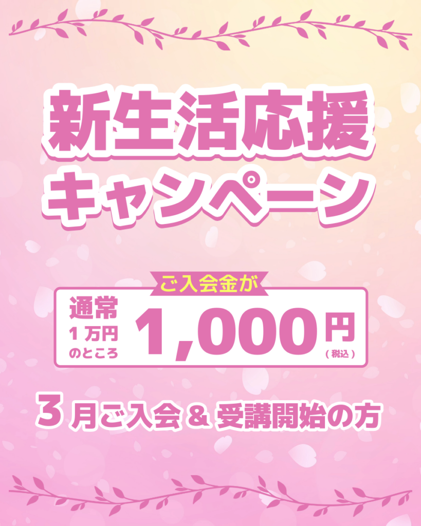 期間中のご入会で、なんと 90%OFFの「1,000円」 に!