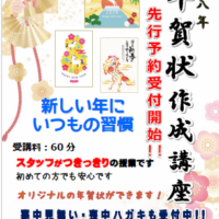 急に寒くなったと思ったらもう11月! 当教室では恒例の『年賀状作成講座』を受け付けておりますお世話になったあの方に年賀状でごあいさつしませんか? オリジナルの年賀状が作成できます親戚へ、お友達へ、上司へ・・・送る相手によ …